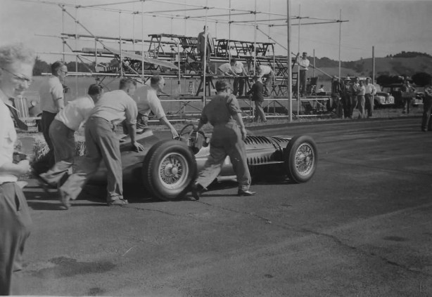 Jones returns to the pits, final victory in Maybach 4 Chev, Port Wakefield, SA Gold Star round March 1959 (Kevin Drage)