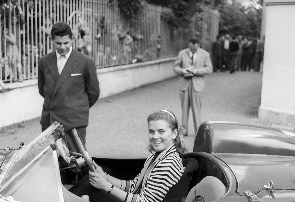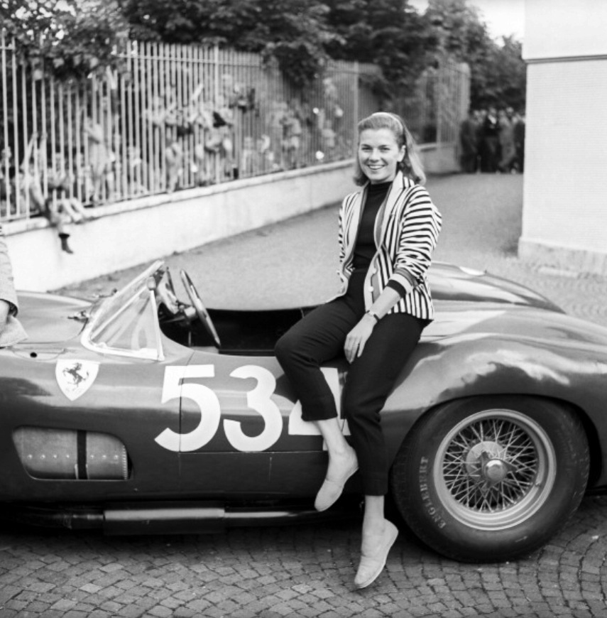 De Portago and Collins shortly before Alfonso’s departure from Brescia, car the ill-fated 335S chassis 0676. Louise Collins is mid-shot.