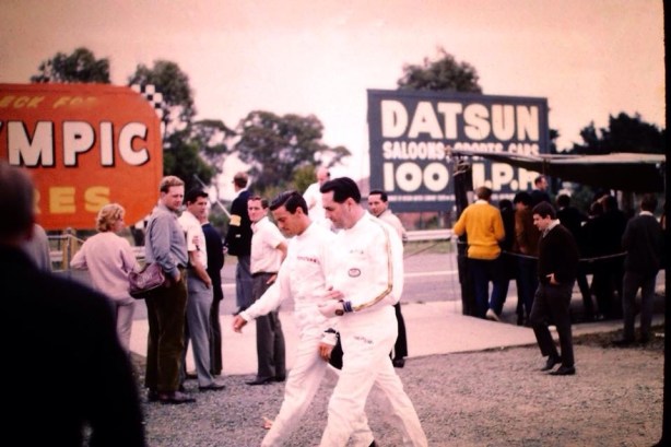 Jim Clark and Jack saunter through the Sandown paddock. Not the greatest of weekends for either!