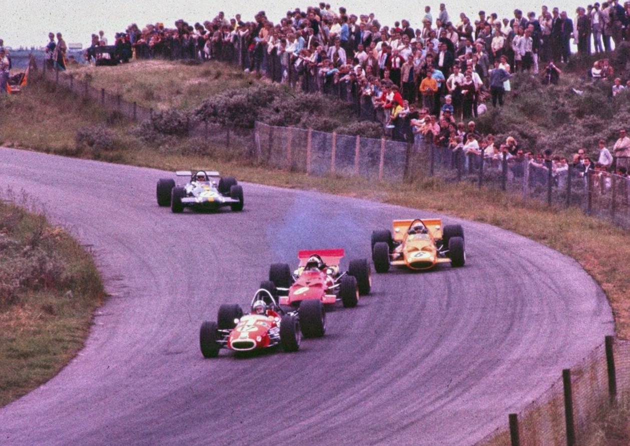 Wow! Thats a lead, Servoz pushing hard, too hard in reality, from the Hill Lotus 49 Ford 1st, Surtees Honda RA301 DNF and Siffert Lotus 49 Ford DNF (unattributed)
