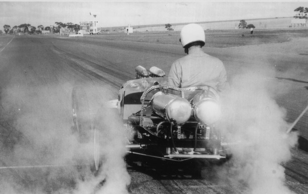 ’In fact fuel rations were tightened during the year which placed a limit on the number of events…The mainstay of Australian motor racing still remained the homebuilt sprecial, a few of them single-seaters but most two seaters used on the road with number plates and lights, and for racing.’