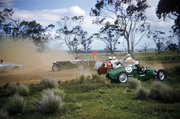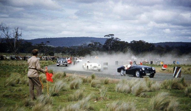 They show his ‘road-registered family car, the Healey 100/4 with LJC Motors bored out 3-litre engine at Huntley’s Hill in 1957’ for the Australian Sports Car Club Wollongong Hillclimb Championship..