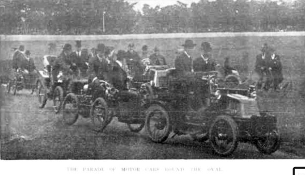 Whilst not a car race but a ‘demonstration or parade’, what seems to be the first event of this type in Australia was held at Adelaide Oval on Saturday 11 October 1902. More interesting is that the first claimed motor-cycle race in Australia took place on the same day.