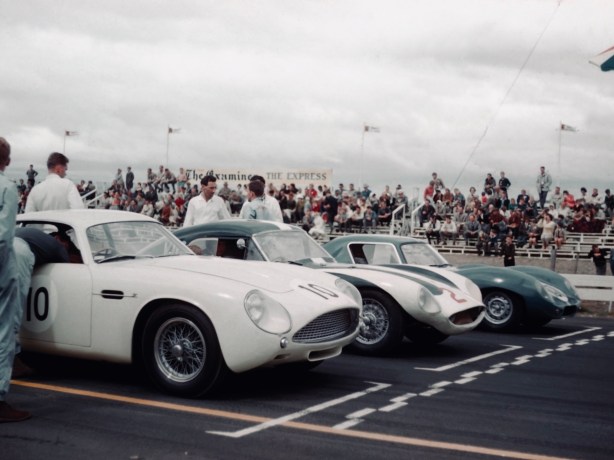 Australian Tourist Trophy contenders with the J Wright Aston Martin DB3S and Doug Whiteford’s Maserati 300S up front with Harry Cape’s MGA Coupe and the #18 Gorringe/Watt MG Holden on grid 2 (J Barnes)