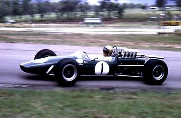 JH in Bob Janes BT11A Repco 740 crossing WF’s Causeway during the February 1968 Warwick Farm 100 Tasman round (D Simpson)