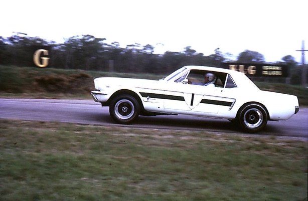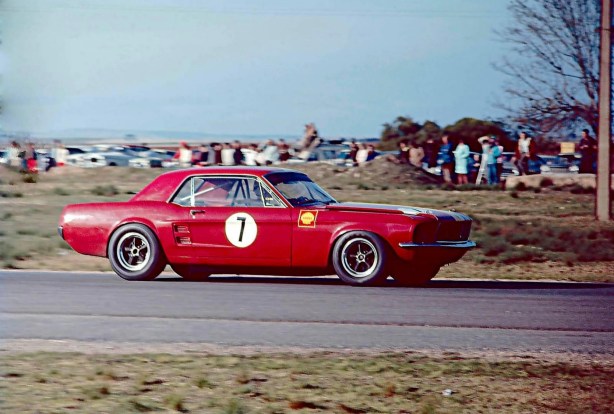 Here it’s Jane’s second Mustang, the thing which was born as a ‘390’ but is here running at 4.7 or 5-litres during the September 1969 Mallala Australian Touring Car Championship round.