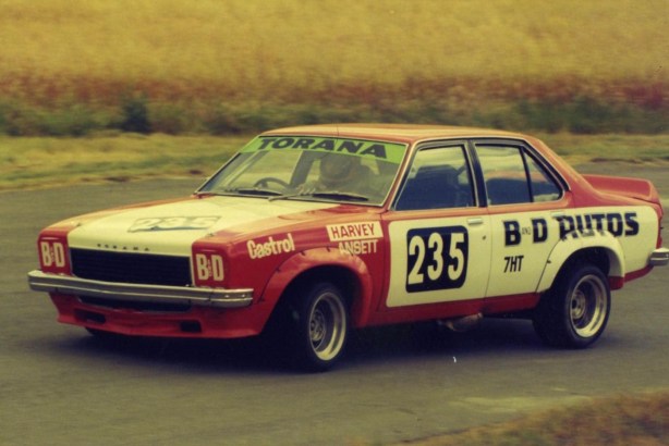 At the December 1974 Baskerville meeting in the B&D Autos Holden Torana L34 5-litre V8.