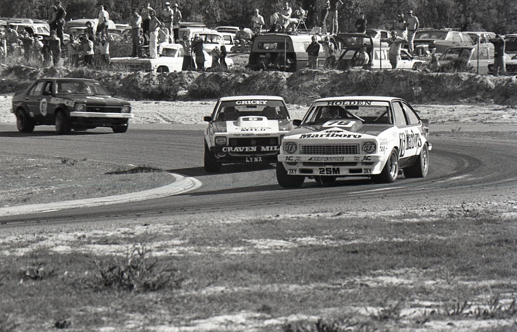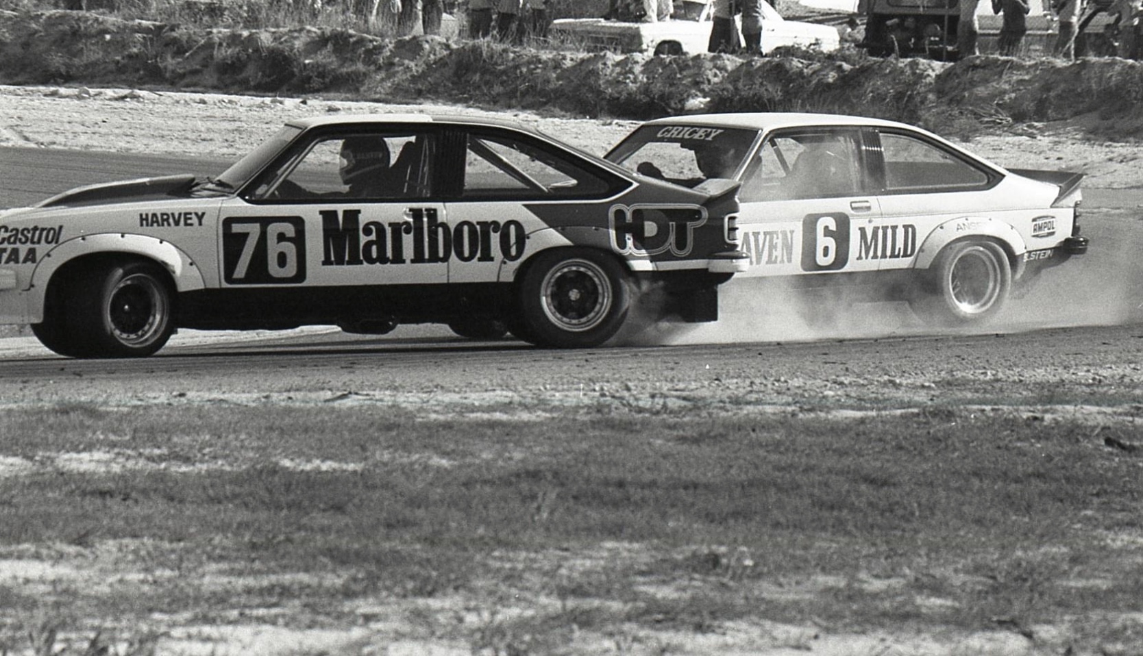Harvey and hard-man Allan Grice extend their Holden Torana A9X 5-litre cars during the Wanneroo Park, Perth ATCC round in May 1979. Car #87 is Ric Rossiter’s Torana L34.