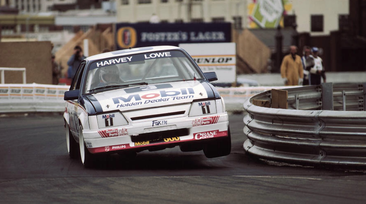 Harves blasts the Group A Holden VK Commodore 5-litre around the 3.3km Wellington Harbour track in 1987.