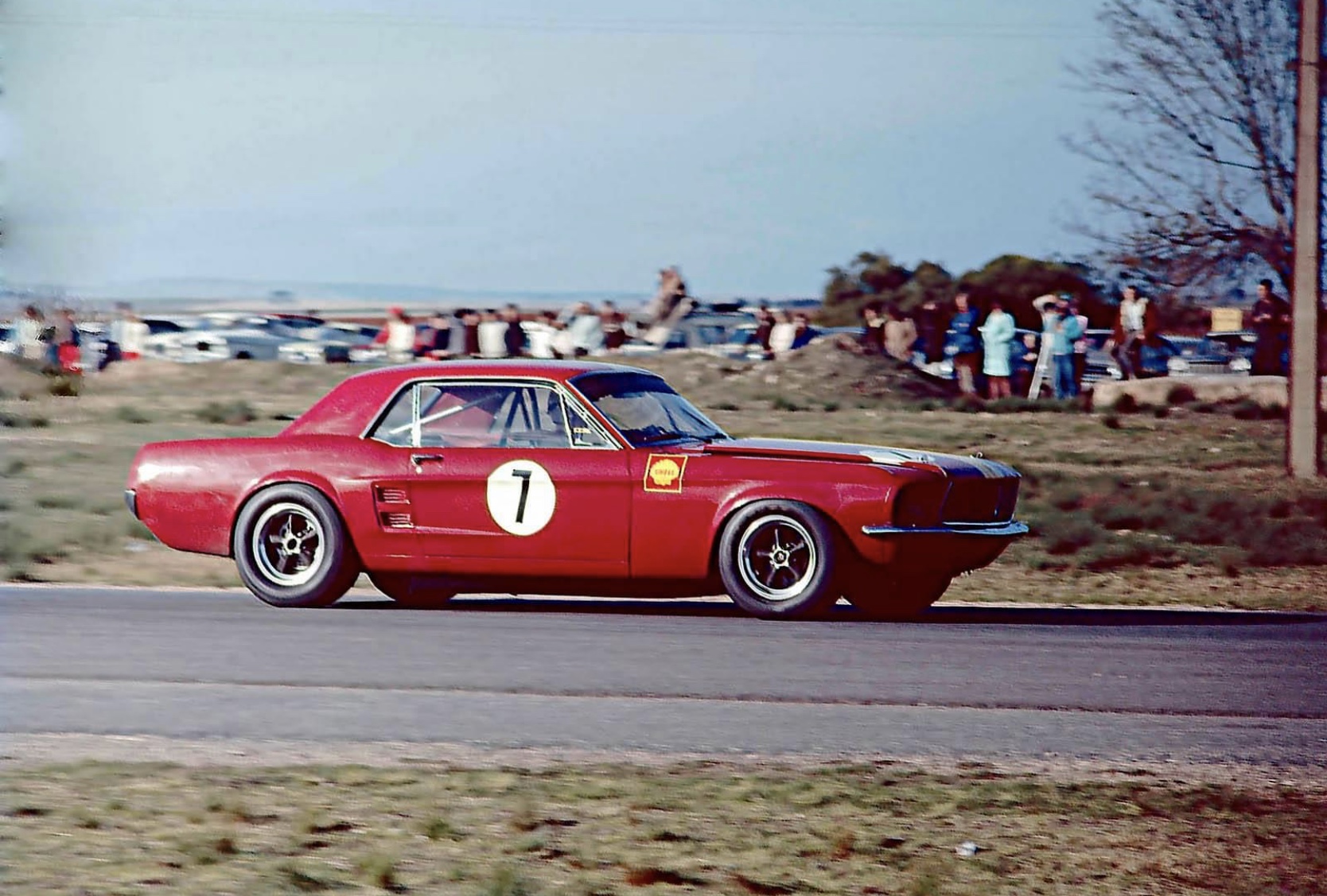 Here it’s Jane’s second Mustang, the thing which was born as a ‘390’ but is here running at 4.7 or 5-litres during the September 1969 Mallala Australian Touring Car Championship round.