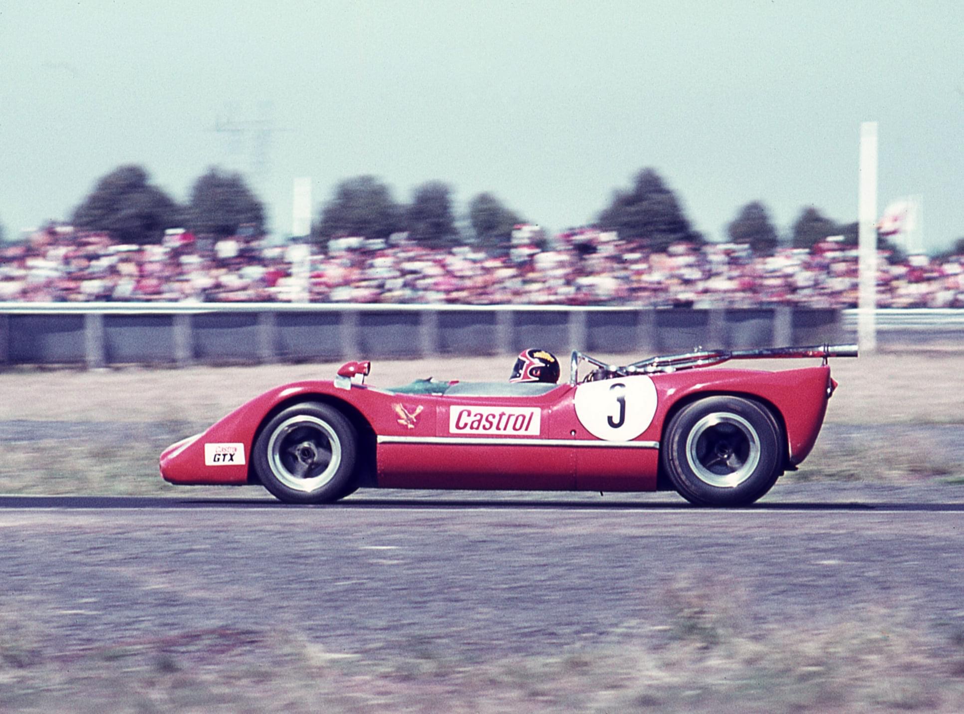 John Harvey in Bob Jane’s McLaren M6B Repco-Brabham V8 nailing Warwick Farm’s Esses on May 2 1971.