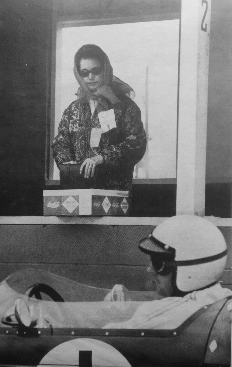 Denny Hulme, Watkins Glen 1967 (Life)Betty Brabham and Jack. Car is BT24 Repco. Watkins Glen, US GP 1967 (Life)