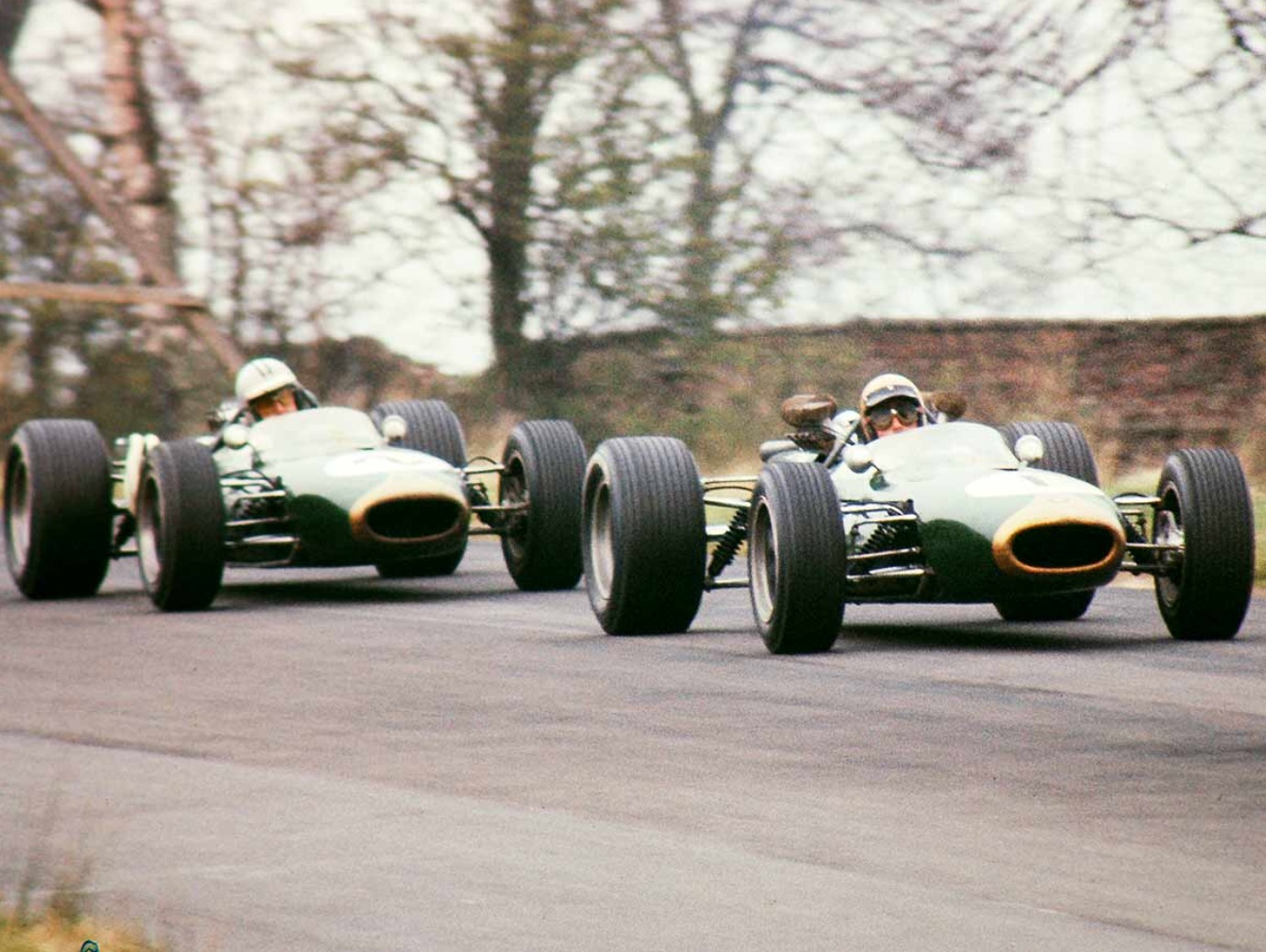 Jack from Denny in BT20’s; Jack’s 740 engined and Denny’s 620, Denny won both heats and Jack the final giving the 740 the first of its many wins in 1967. Oulton Park ‘Spring Cup’, 15 April 1967 (Brian Watson)