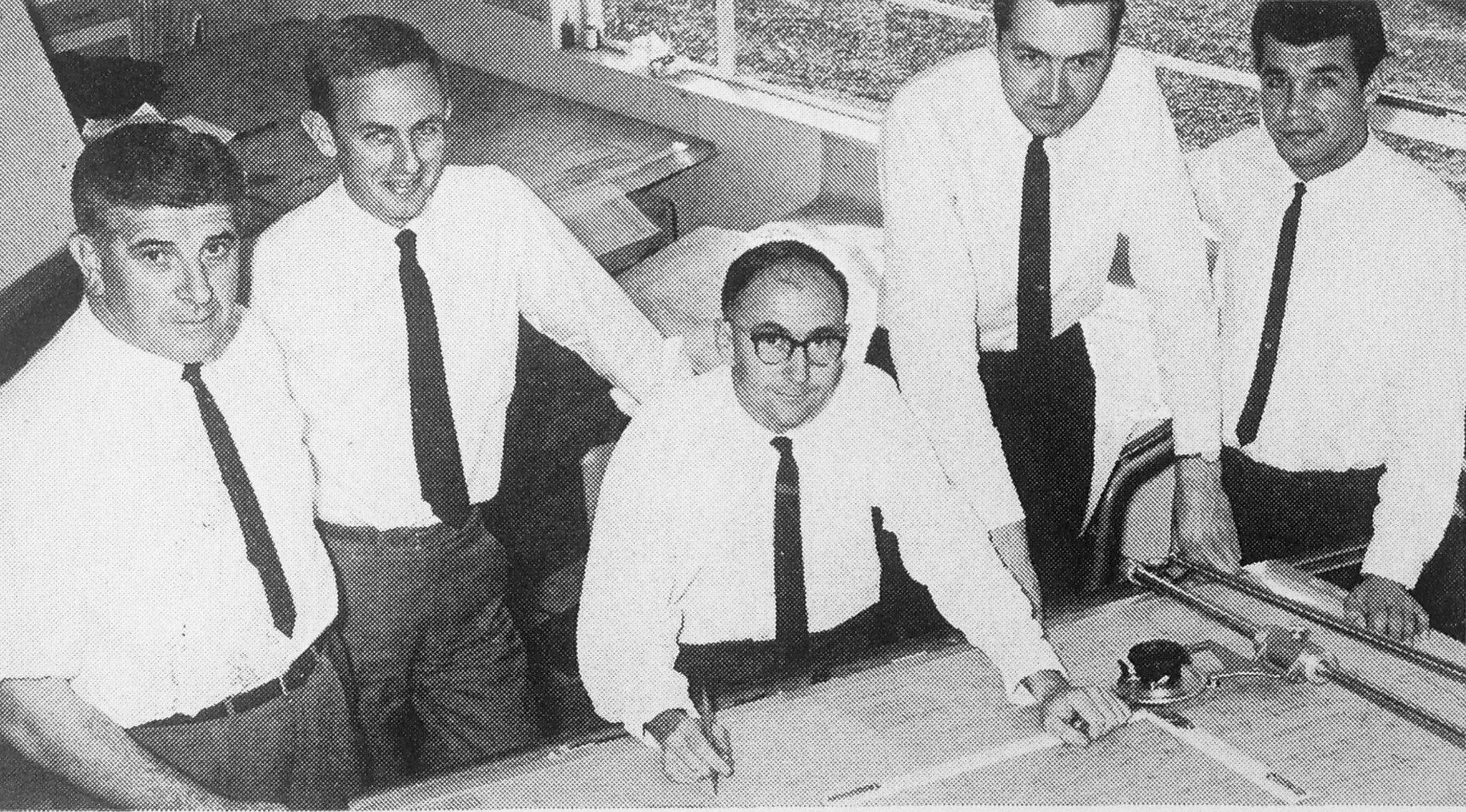 The post Phil Irving RBE design team; L>R GM Frank Hallam and Engineers Norman Wilson, Lindsay Hooper, John Judd and Brian Heard (Repco)
