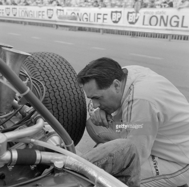 Jack Brabham pondering setup changes. US GP 1967 (Life)