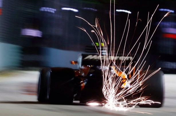 2017 Singapore GP, Vandoorne, McLaren MPL32 Honda. Lewis Hamilton the winner in a Mercedes F1 W08 (McLaren)