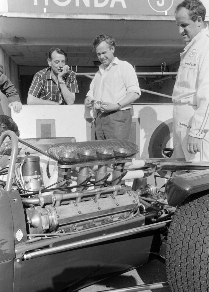 During the same research session that i was reading about McLaren’s use of 3D-Printing (announced April 2017) to more quickly design and deploy components on their cars- hydraulic line bracket, rear wing flap, radio harness boot and carbon fibre brake ducts to be specific, i also found some photos of those designer/builders Messrs Brabham, Gurney and Surtees.