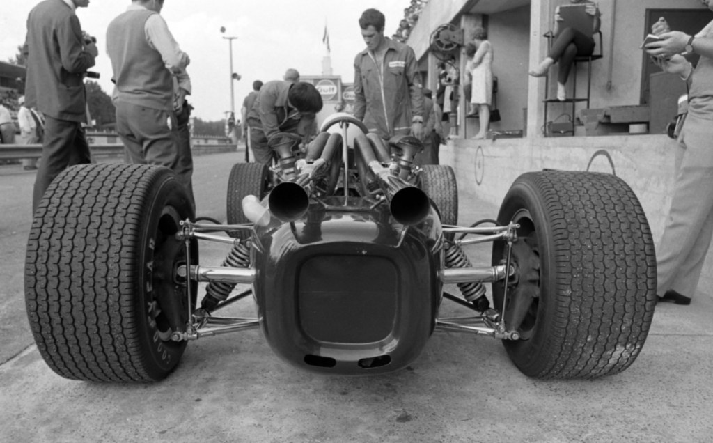 Rear spoiler, Monza (MotorSport)Note the winglets or spoilers, Jack’s nosecone at Spa in mid-June 1967 (MotorSport)