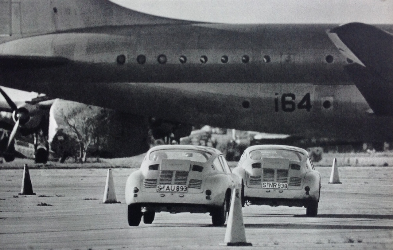 (Louis Klemantaski)Battle for the test drive between Belgian Journalist/Le Mans winner Paul Frere and one of the Porsche drivers, any idea who?…