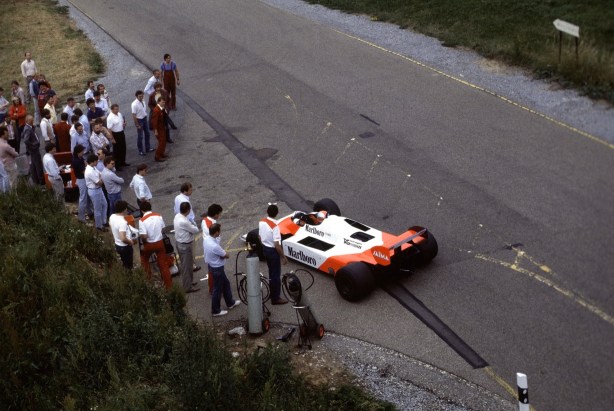 At Zandvoort ‘Niki was unbelievably quick on the straight (in MP4/1E) but basically the Cosworth wing package download was way deficient with turbo power. We cooked the brakes in the race, a function of the turbo car going about 30 mph faster down the straight than the Cosworth’ said Barnard.