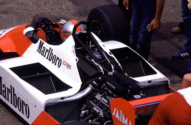 The car Watson is testing in these shots is McLaren’s original prototype carbon fibre chassis MP4/1-1 with 1982 straight sided bodywork- converted into the turbo test hack it was dubbed MP4/1D.