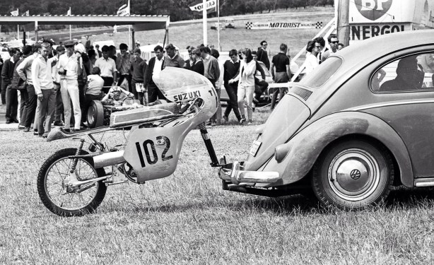 One wag questioned whether the Beetle was towing the Suzuki or whether the 50cc two-stroke was pushing Wolfsburg’s finest.
