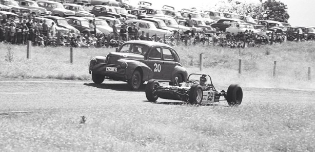 Gossy going around the inside of Allan Robertson’s Peugeot 203 that December weekend. One of the reasons I love these photos is because of the relaxed nature of a race meeting at a venue I’ve not been to.
