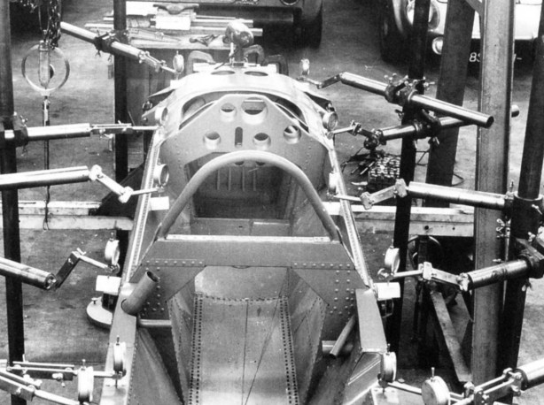A magnesium monocoque chassis supported the unstressed, fuel injected V8 which is variously quoted at between 380-430bhp at this early stage of its development, I am more at the conservative end of that range.