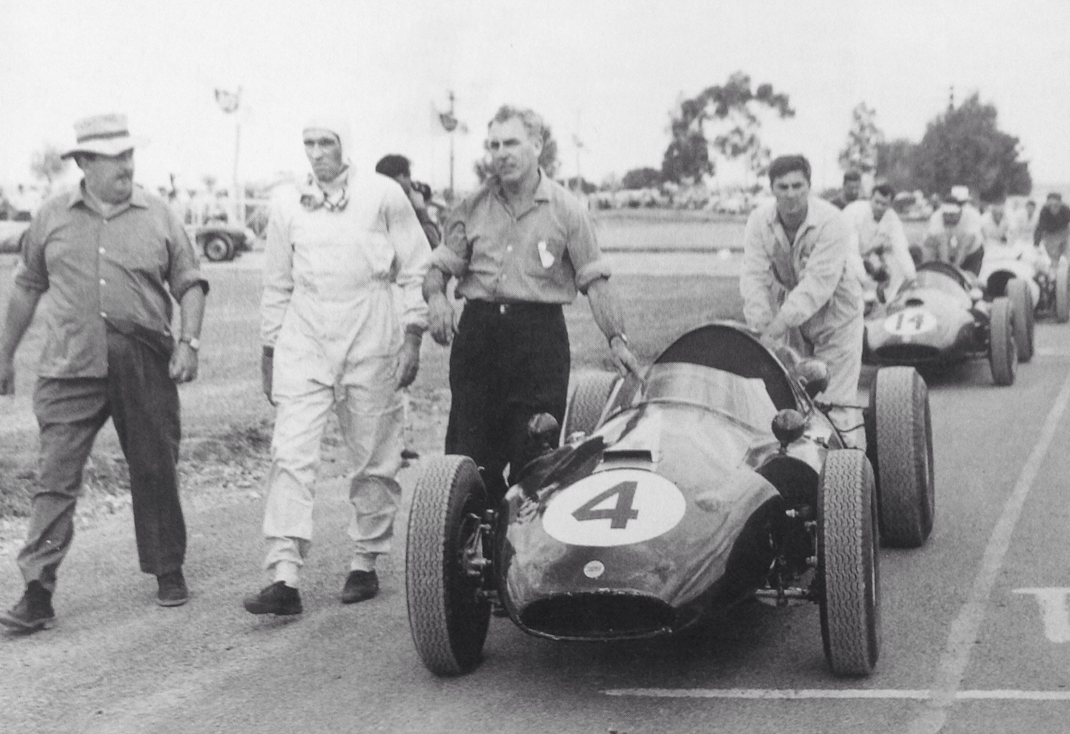 Davison was a busy boy in 1956 racing the Ferrari, contesting the Mobilgas Round Australia Trial with Peter Ward in a Peugeot 403, racing his Phil Irving fettled Cooper-Vincent at Collingrove Hillclimb and at Part Wakefield, Templestowe and at Mount Panorama where he defeated Bruce Walton to win his second Australian Hillclimb Championship. Then there was the small matter of the AGP being organised by the Light Car Club of Australia, of which he had just been elected President, his Paragon Shoes business to run and a large family!