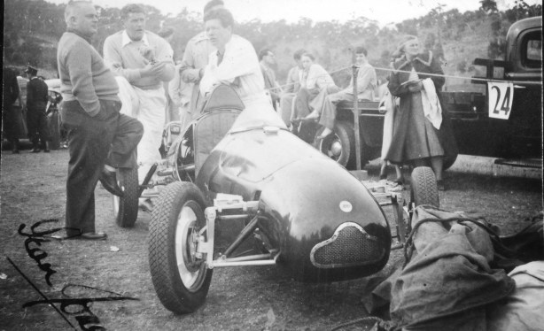 Not long after returning to Melbourne the car was damaged in an accident on the way back to town when driven by one of the mechanics from Templestowe Hillclimb. Taken to Lyndon Duckett’s workshop in Toorak the car’s body was removed, where the remains, ‘including the bent front end, suspension and buckled wheels’ stayed until acquired by Gavin Sala in 1974.