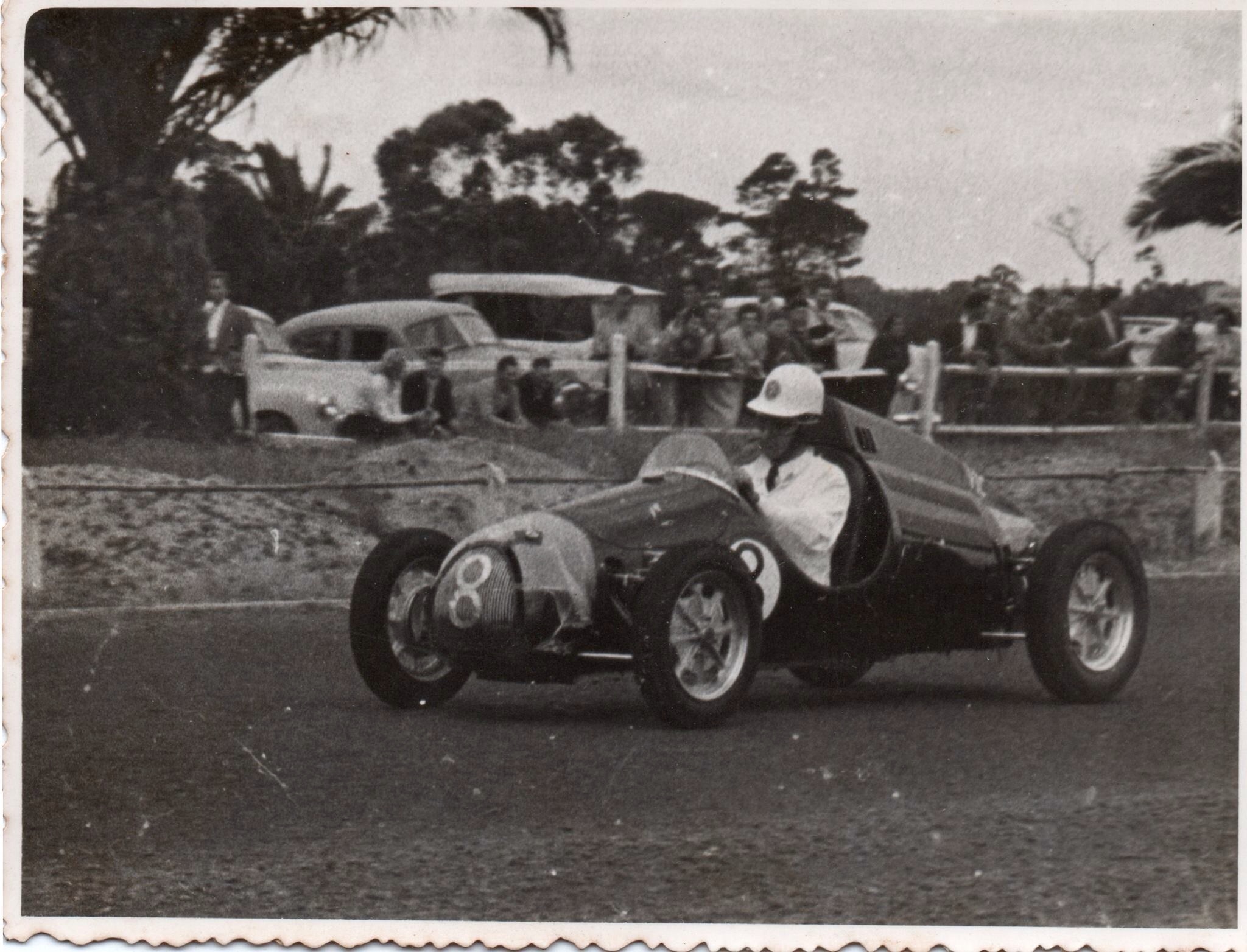 Later in the day Tony was second in the first Southland Road Race run over 41 5.87km laps of a course laid out around the hamlet of Ryal Bush 20km north of Invercargill, at the very south of New Zealand’s South Island. He drove his ex-Ascari Ferrari 500 powered by a 3-litre 750S sportscar engine, in front of him was Peter Whitehead in a similar car.