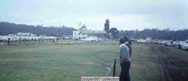 The paddock is to the right, within a year or so a footbridge is in place and a little later a marvellous pit and spectator viewing facility. That helps date the shot.