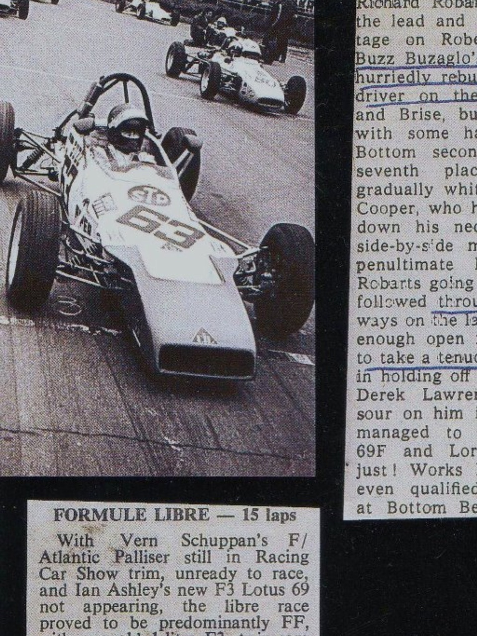 Johnny and Buzz won many races that year with Buzaglo taking the Castle Combe FF lap record which stood for eight years, and the BRSCC South Western FF Championship.