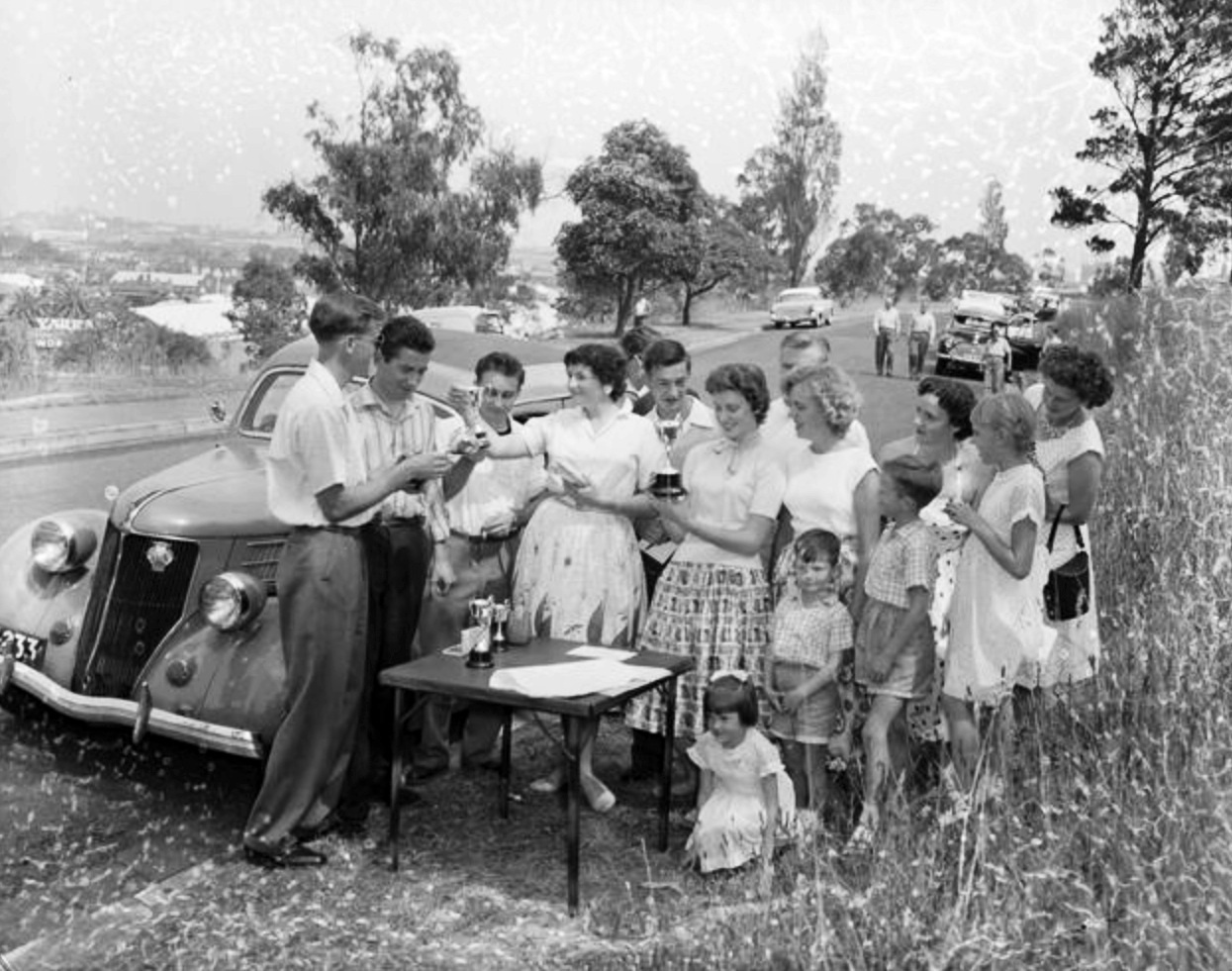 These images from the Brabham Family Collection were taken at Mount Panorama during the Easter 1954 meeting, the start of the A-Grade scratch race.
