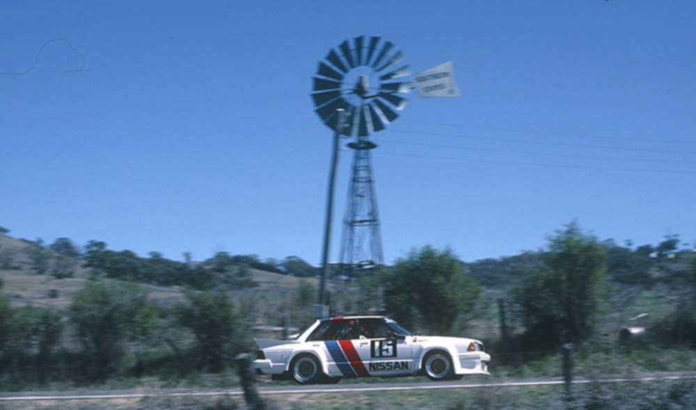 George Fury on Conrod Straight in his works Nissan Bluebird turbo during the September 1984 Bathurst 1000 weekend…