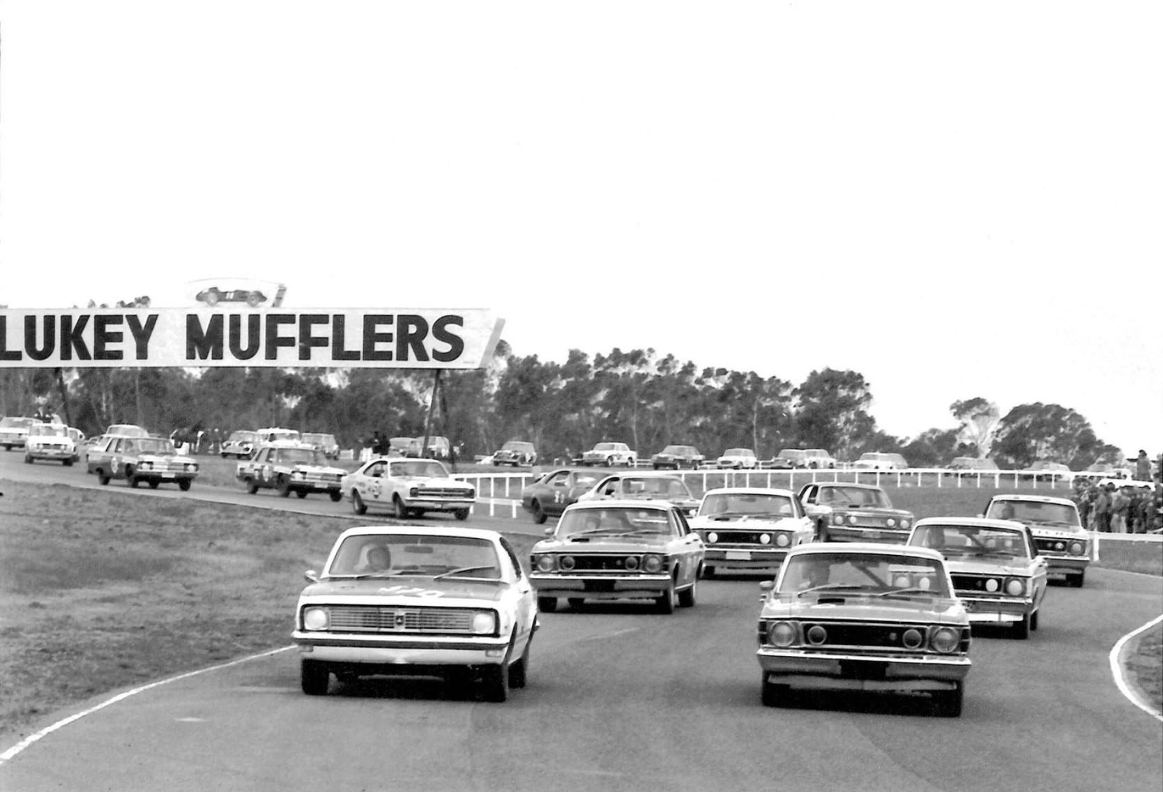 1968 South Pacific Trophy field race in the dry, so it’s the preliminary ‘Examiner Scratch Race, contested over 12 laps, it rained cats and dogs on the Labour Day Monday public holiday.