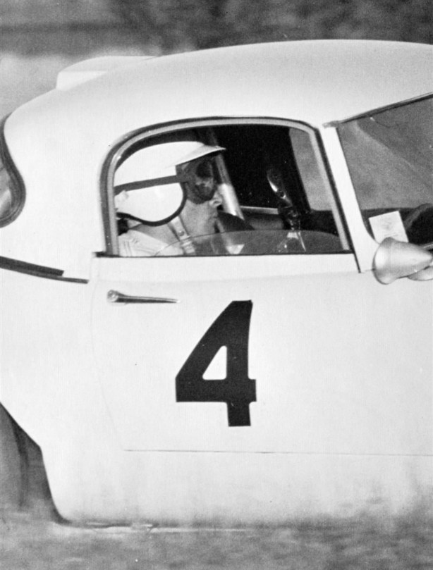 The car in the middle of the shot is the gorgeous Clive Adams designed Prad Holden sportscar styled along the lines of a Maserati 300S. Jack Pryor built the chassis and Stan Brown it’s shapely body. Spencer Martin bought, developed and raced the car successfully after Adams sold it.