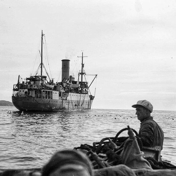 The lighthouse supply ship SS Cape York off Maatsuyker Island on Tasmania’s southwest coast, mid-sixties (Nat Arc Oz)