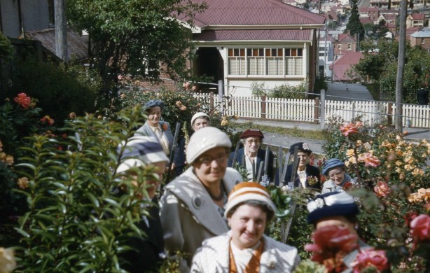 This group of ladies reminds me of my grandmother and her four sisters frocking up, hats and all for a family ceremonial occasion- like a Christening!
