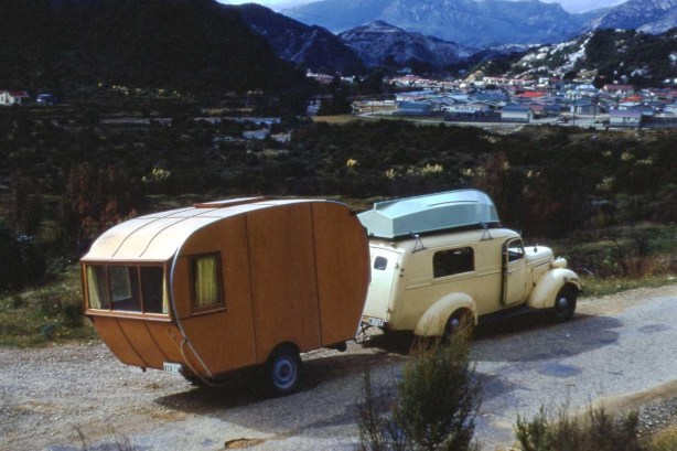 Isn’t ‘the rig’ amazing, what make and model is the home built caravan’s tow car or truck? The wow factor was succeeded by memories of long interstate trips Australian style before dual-lane highways became common in the eighties- Melbourne to Sydney then, about 500 miles now, was ‘a lot longer then’ on the Hume Highway as yer Dad’s 186cid HK Kingswood wagon was stuck behind outfits like this one and semi-trailers which did not gobble up the road as they do now. ‘How much further Dad?!’ every thirty minutes,  its a wonder he didn’t strangle the three of us really.